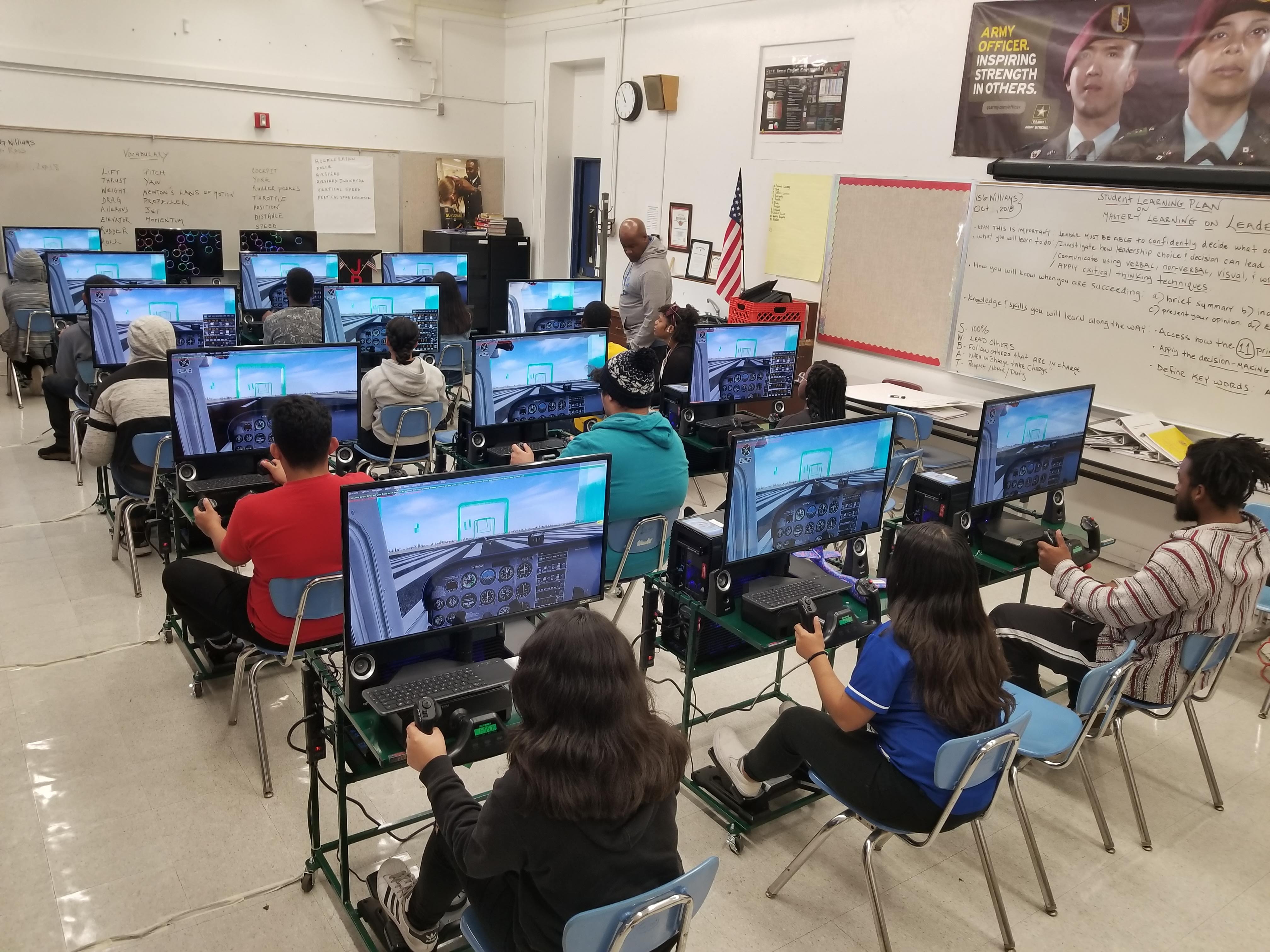 Our simulators and curriculum are used in STEM labs, Science/Physics/ Engineering Design classrooms, Flying/Aviation Clubs, After School Aviation Lab programs and JROTC program.