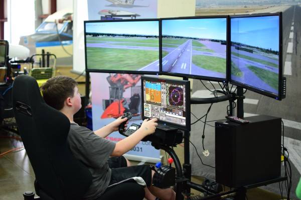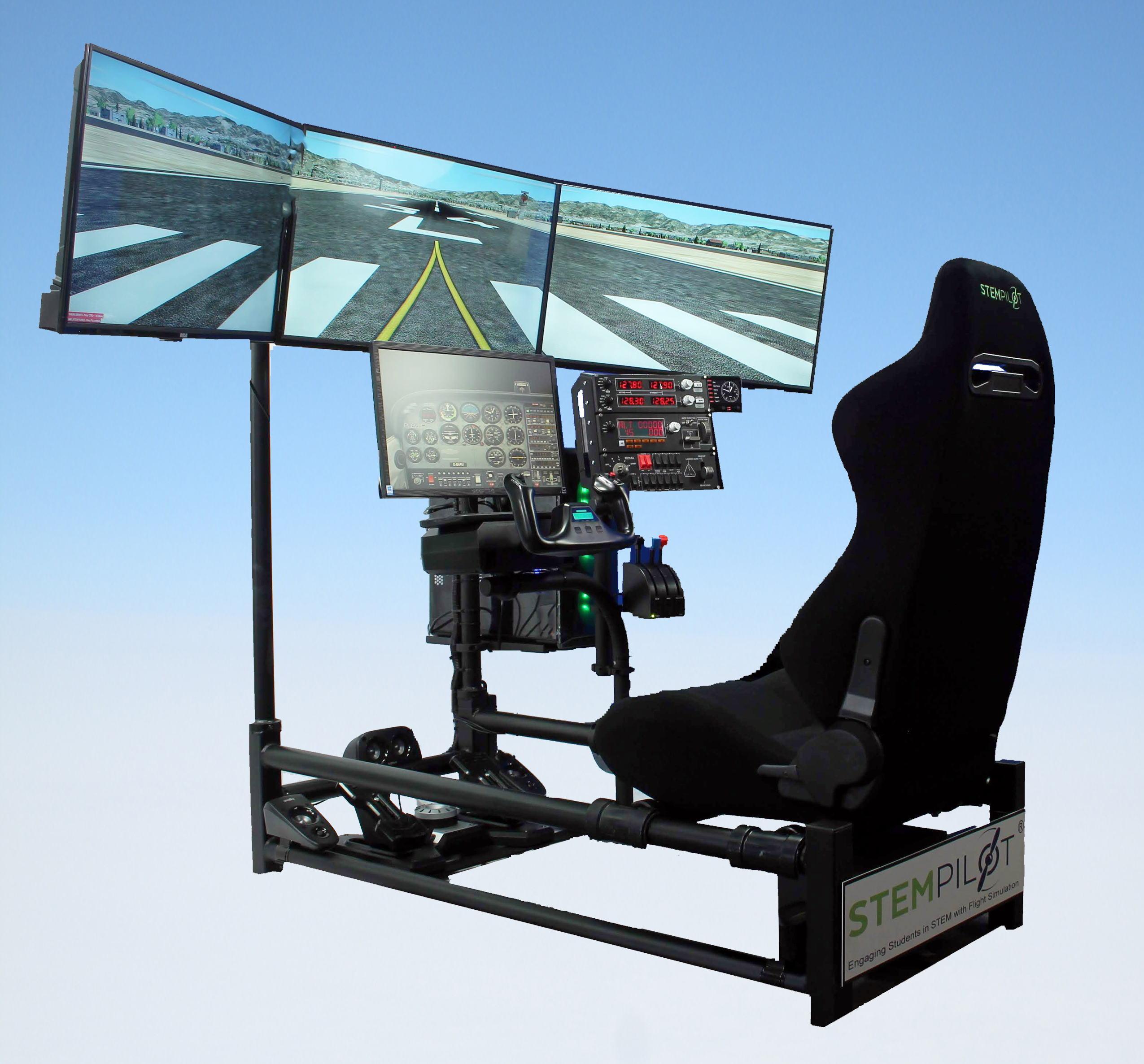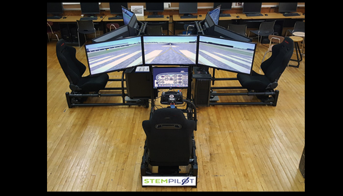 The Pilot Pro 3 is capable of flying from every airfield on the planet in one of 50+ aircraft. Students will plan and fly flights using basic algebra, geometry, trigonometry, physics, geography and topography. Each Pilot Pro has our tutored simulator learning missions teaching all of the fundaments by flying through boxes in the sky.