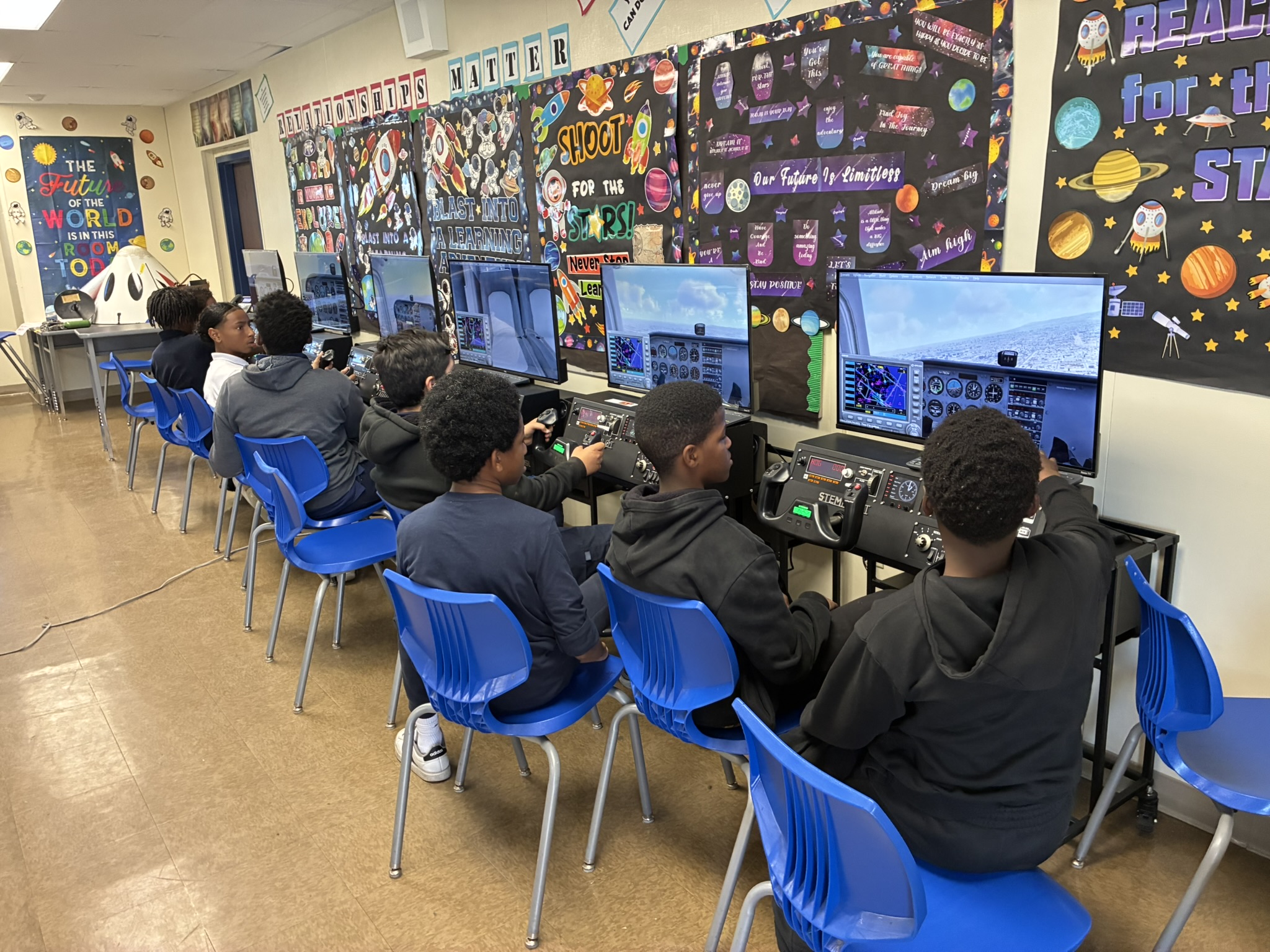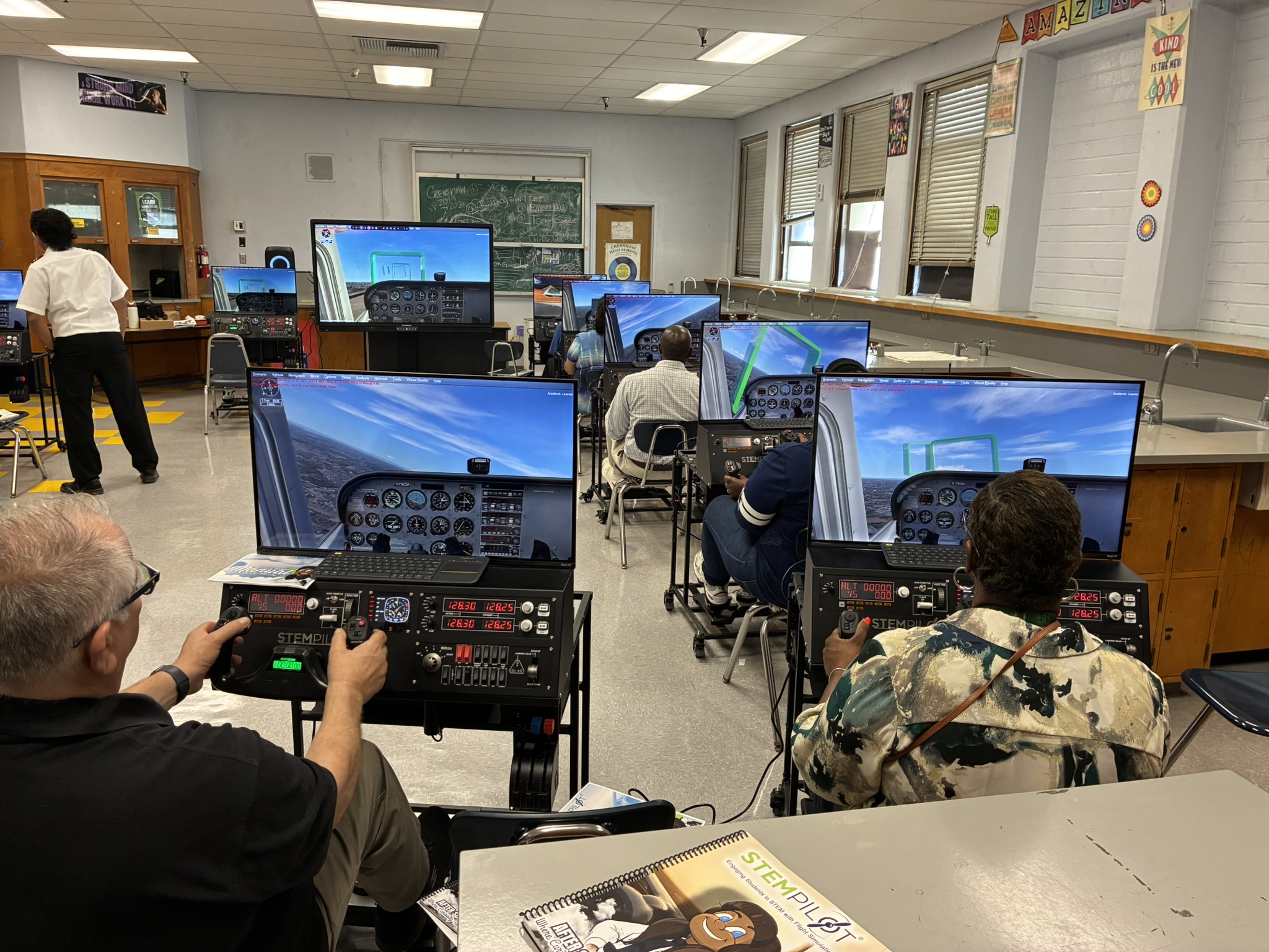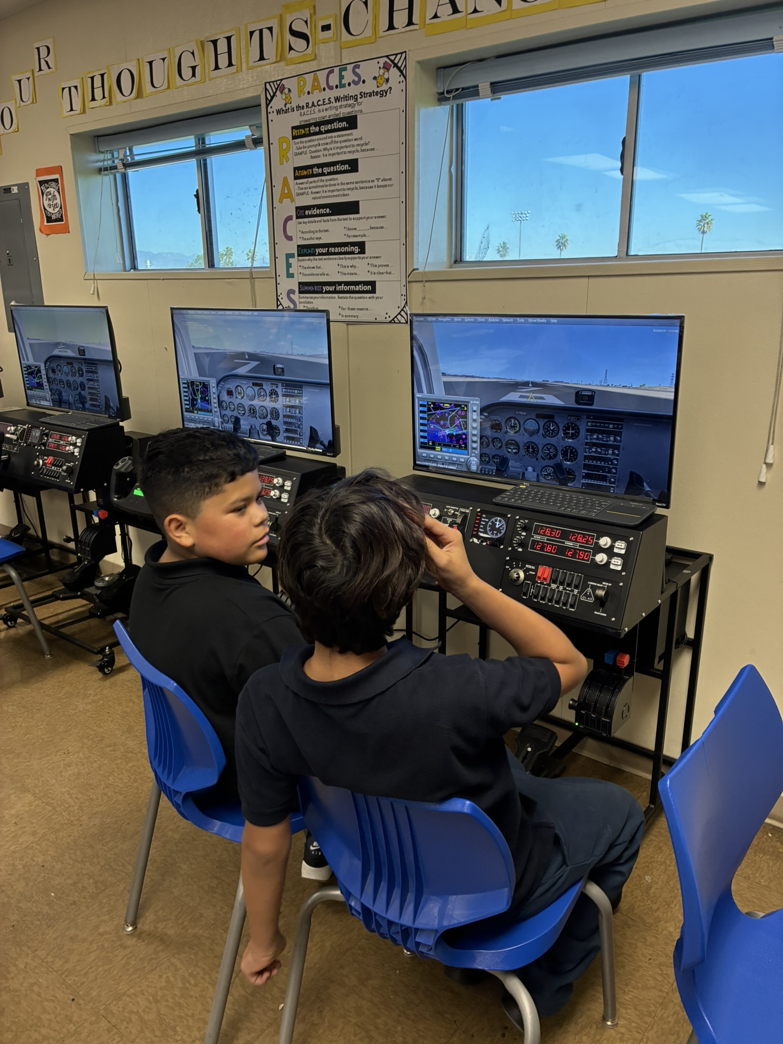 The Edustation Pro is capable of flying from every airfield on the planet in one of 50+ aircraft. Students will plan and fly flights using basic algebra, geometry, trigonometry, physics, geography and topography. Edustations are designed for classrooms where they can be nested together. Each Edustation has our tutored simulator learning missions teaching all of the fundaments by flying through boxes in the sky.